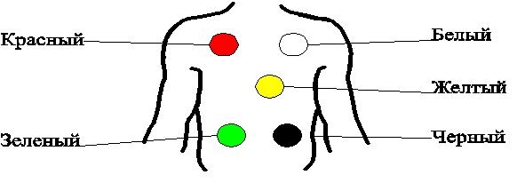 | Схема снятия ЭКГ потенциалов | по пяти точкам |